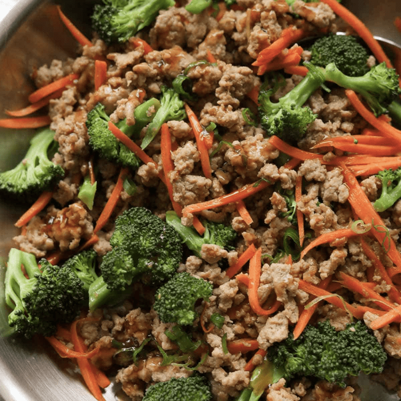 Lean ground beef sautéed with carrots and broccoli in a light ginger seasoning. Topped with coconut aminos, black sesame seeds and a drizzle of sriracha. A side of healthy “yum yum” sauce takes this meal to the next level!